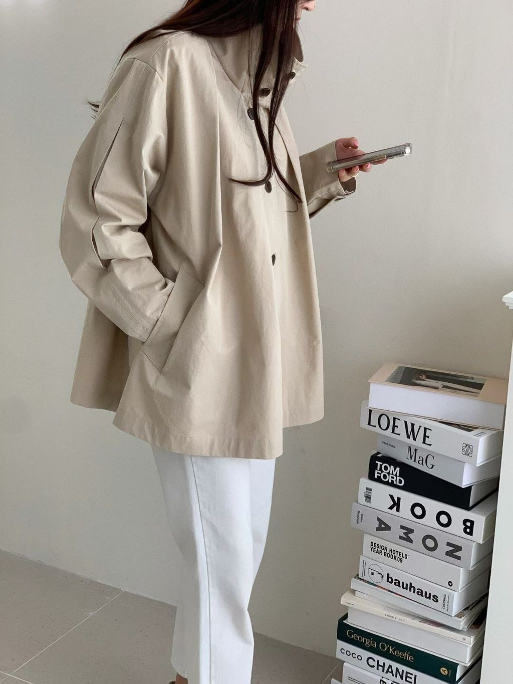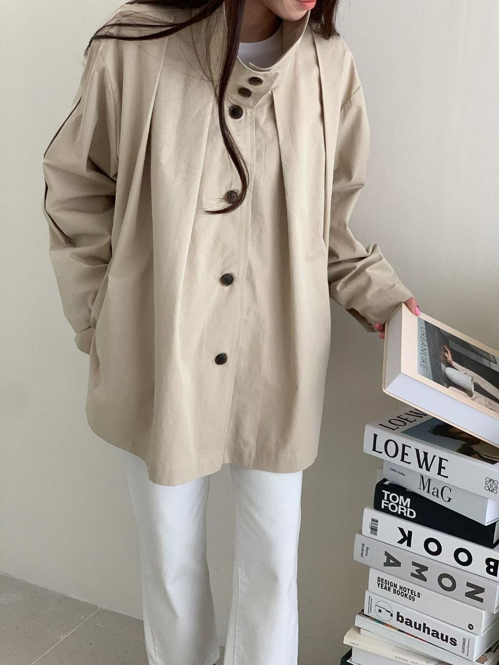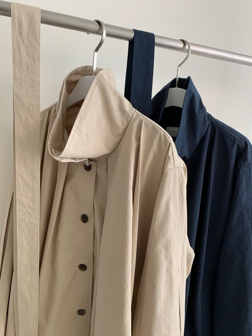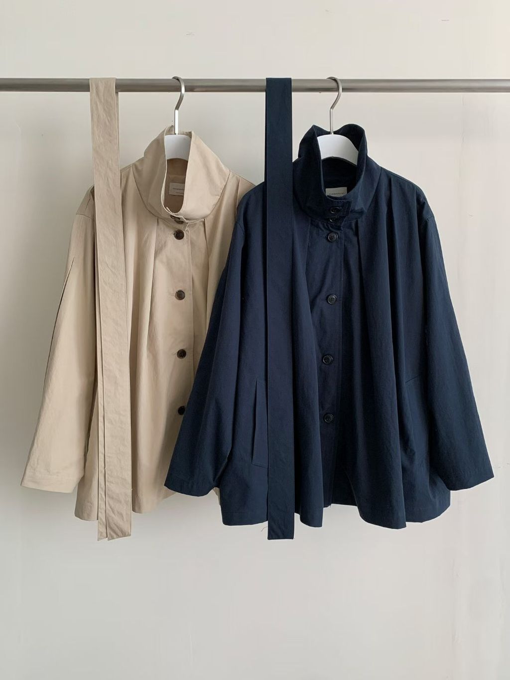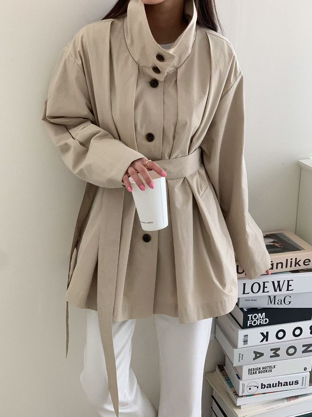 m6302-壓褶斗篷感風衣外套+綁帶(限量)