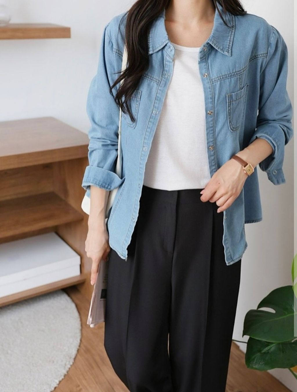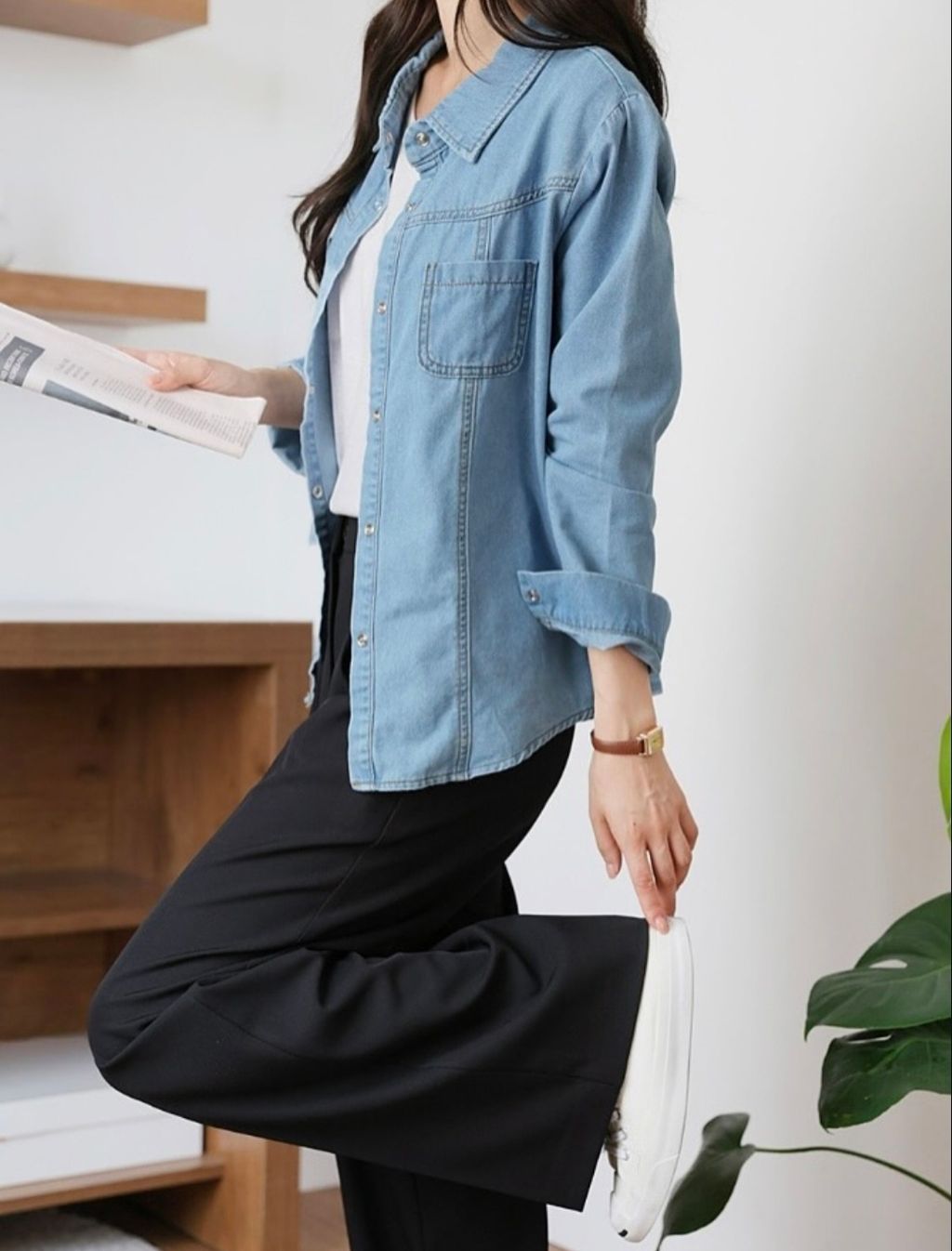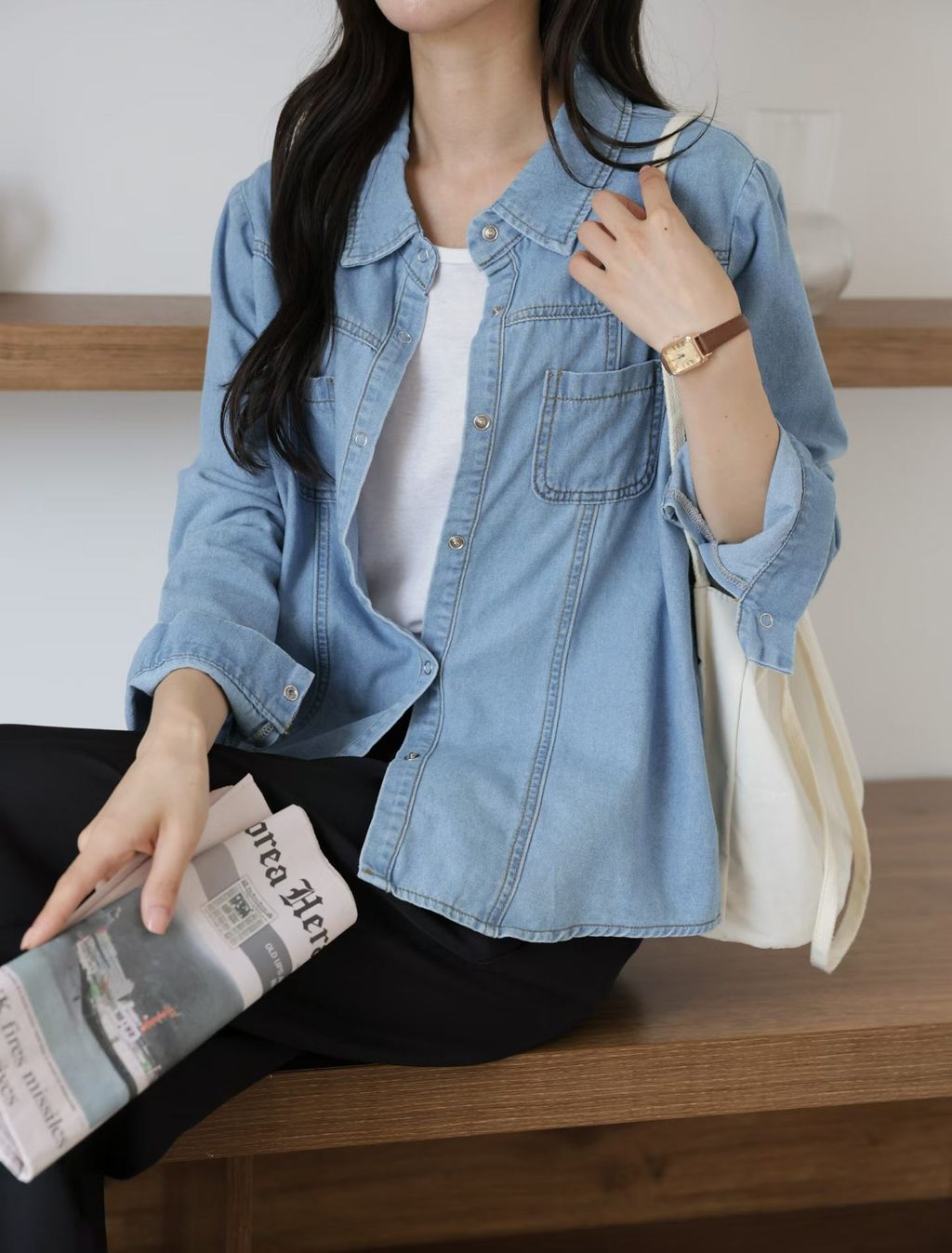 可以穿春、秋、冬三個季節的牛仔襯衫