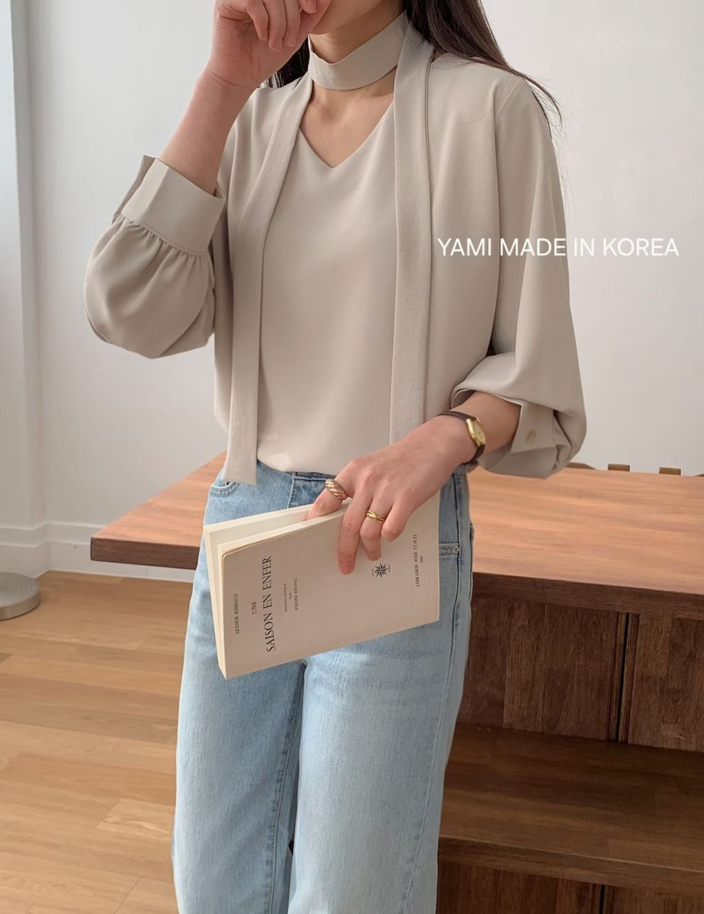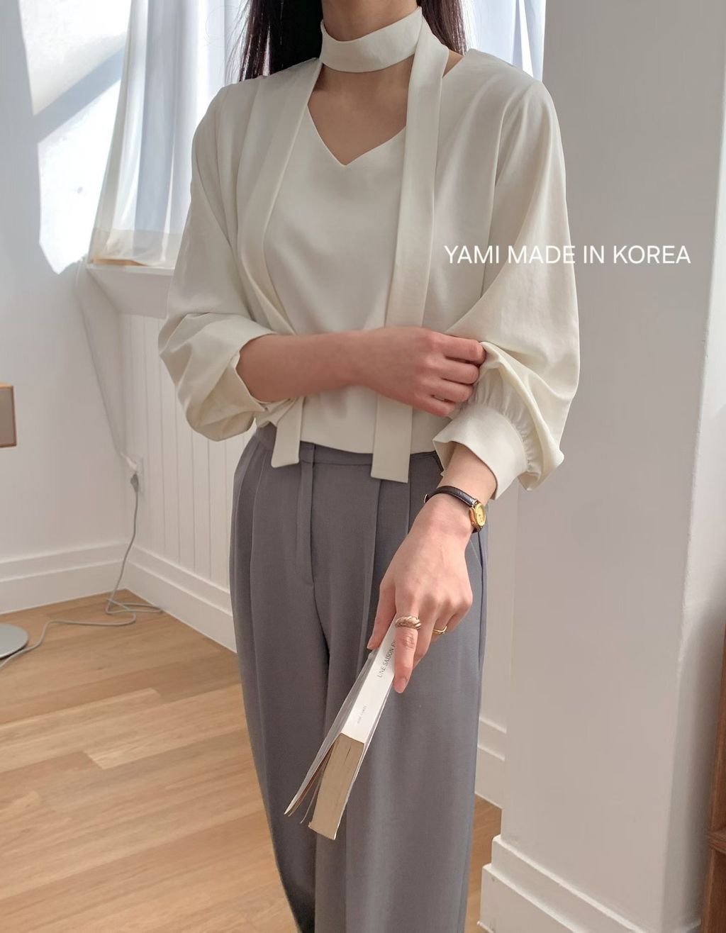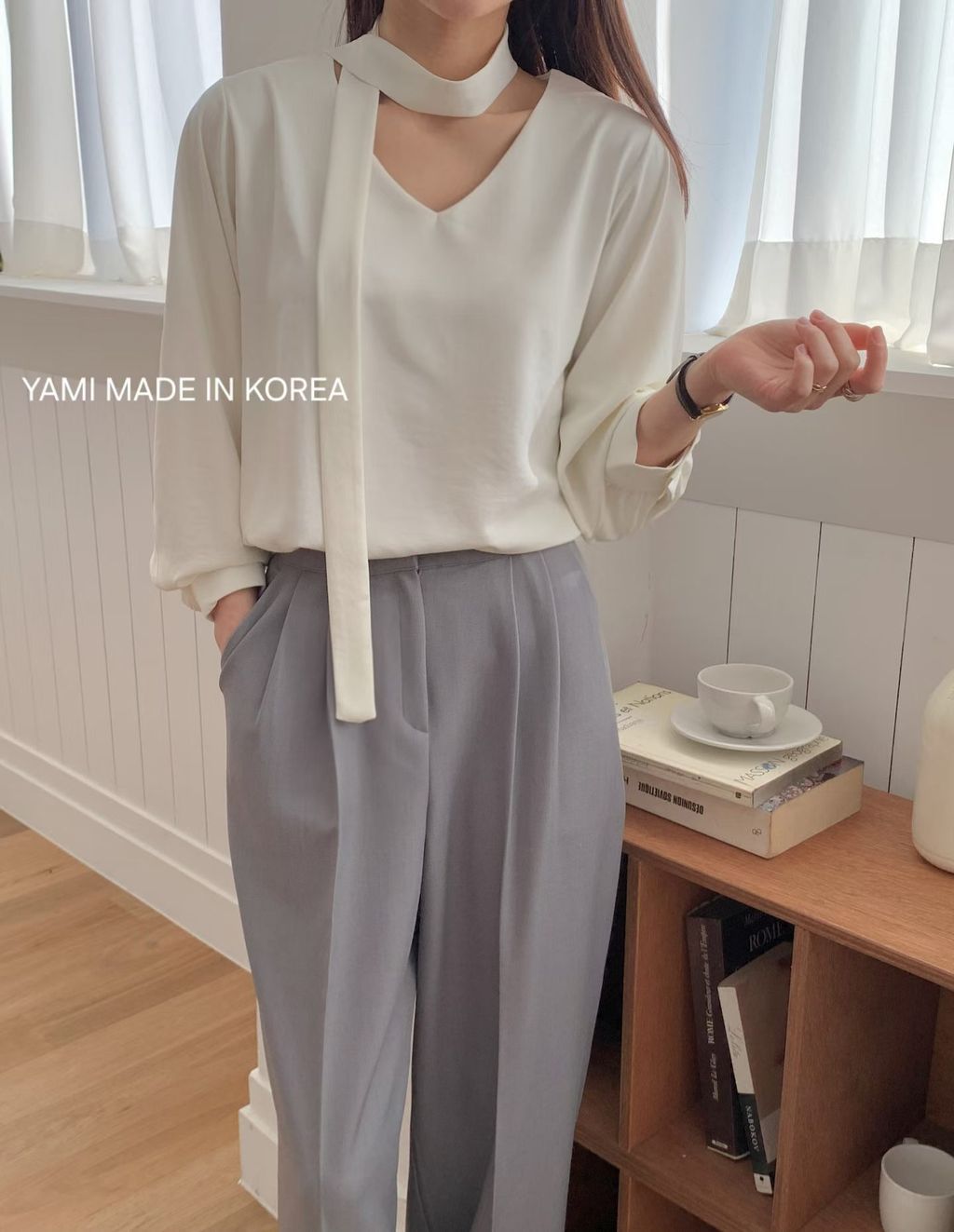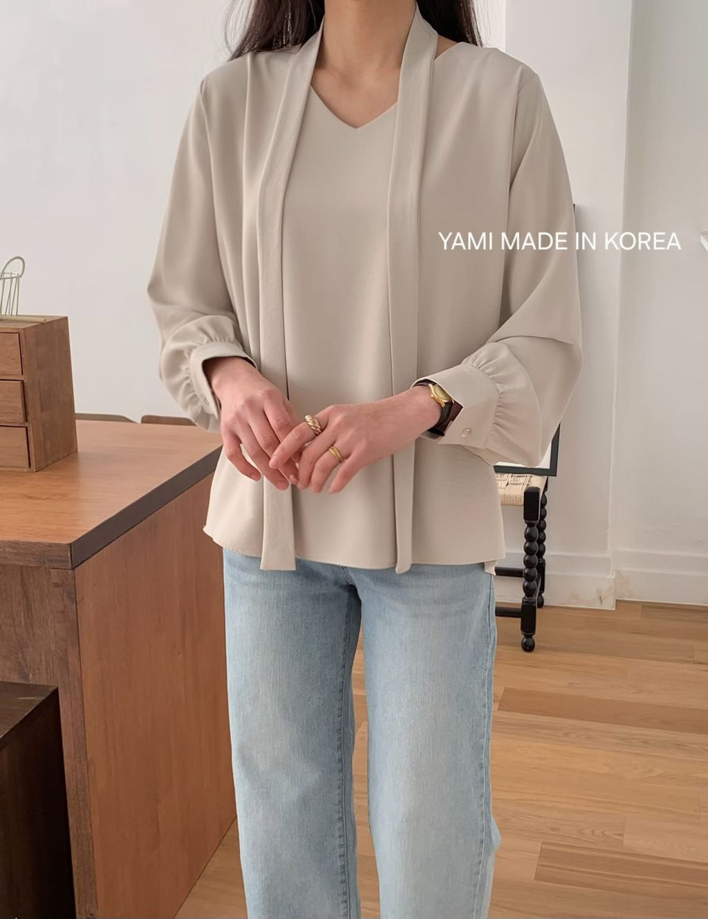 本身也是一件質感很好、百搭的V領雪紡