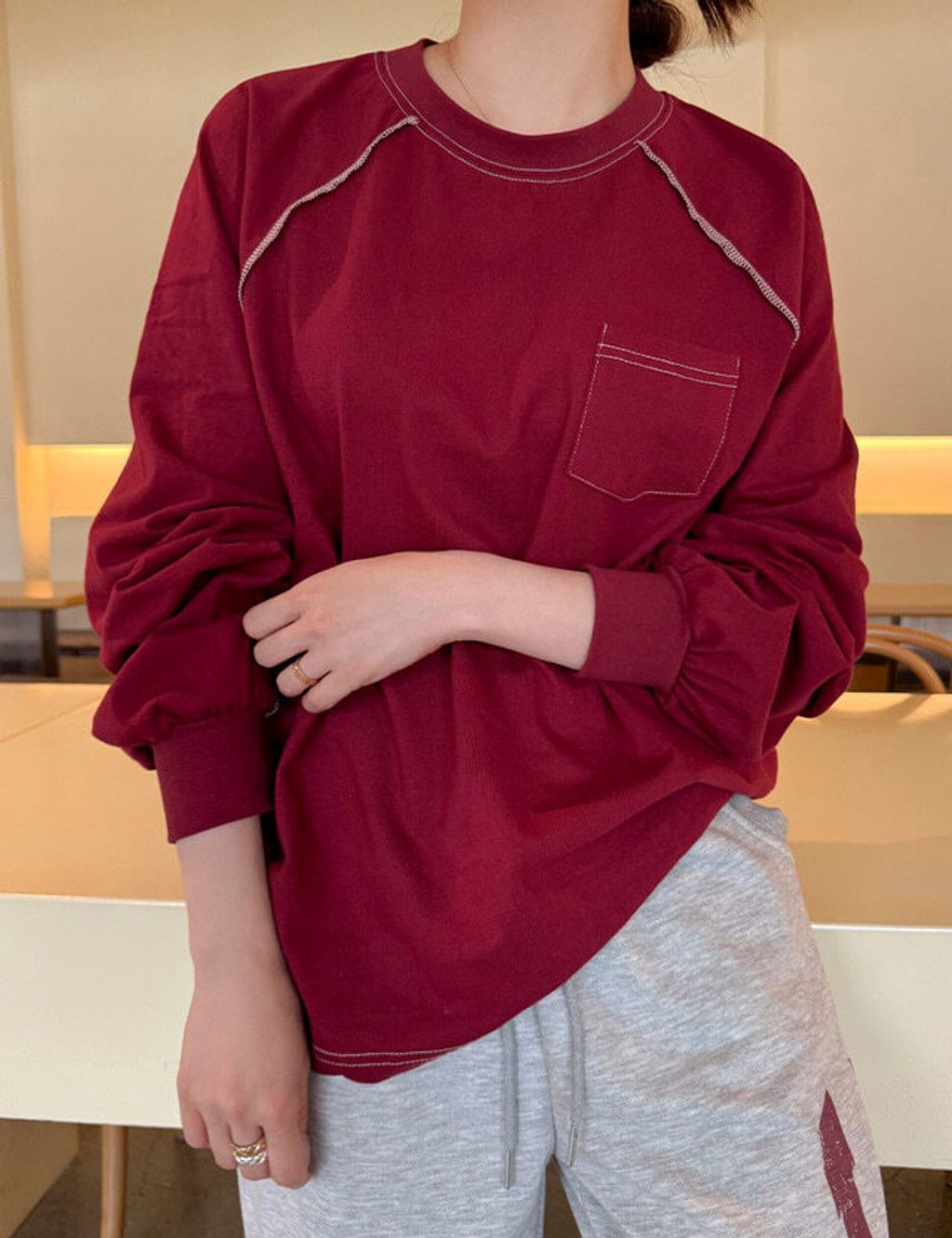 o5122-車縫線口袋純棉衫