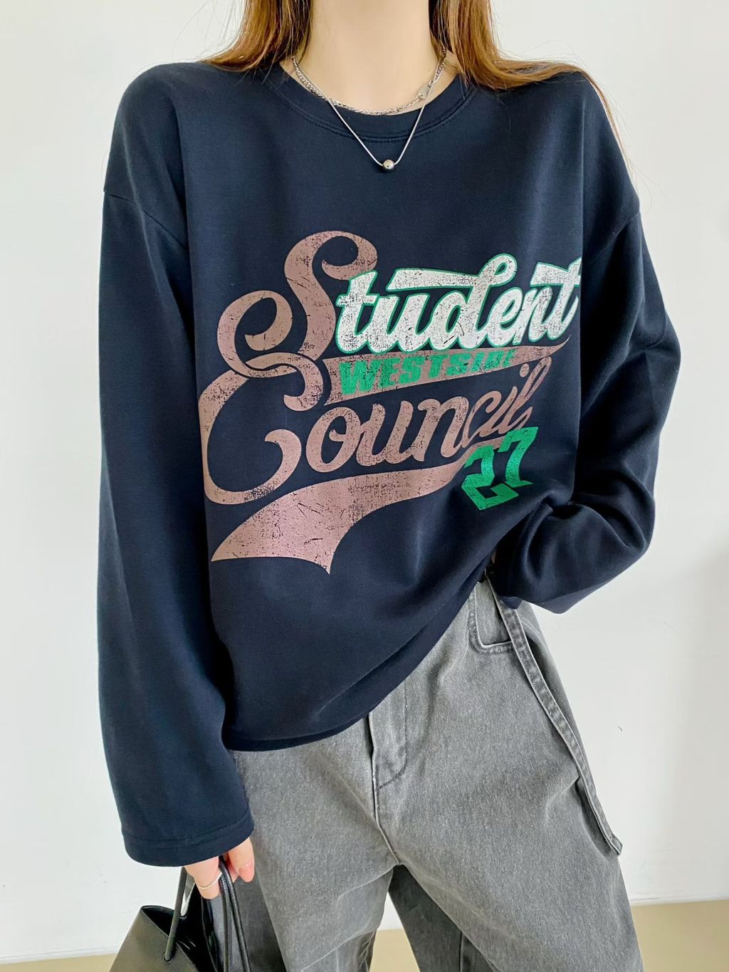 o5138-長版寬鬆字母棉t
